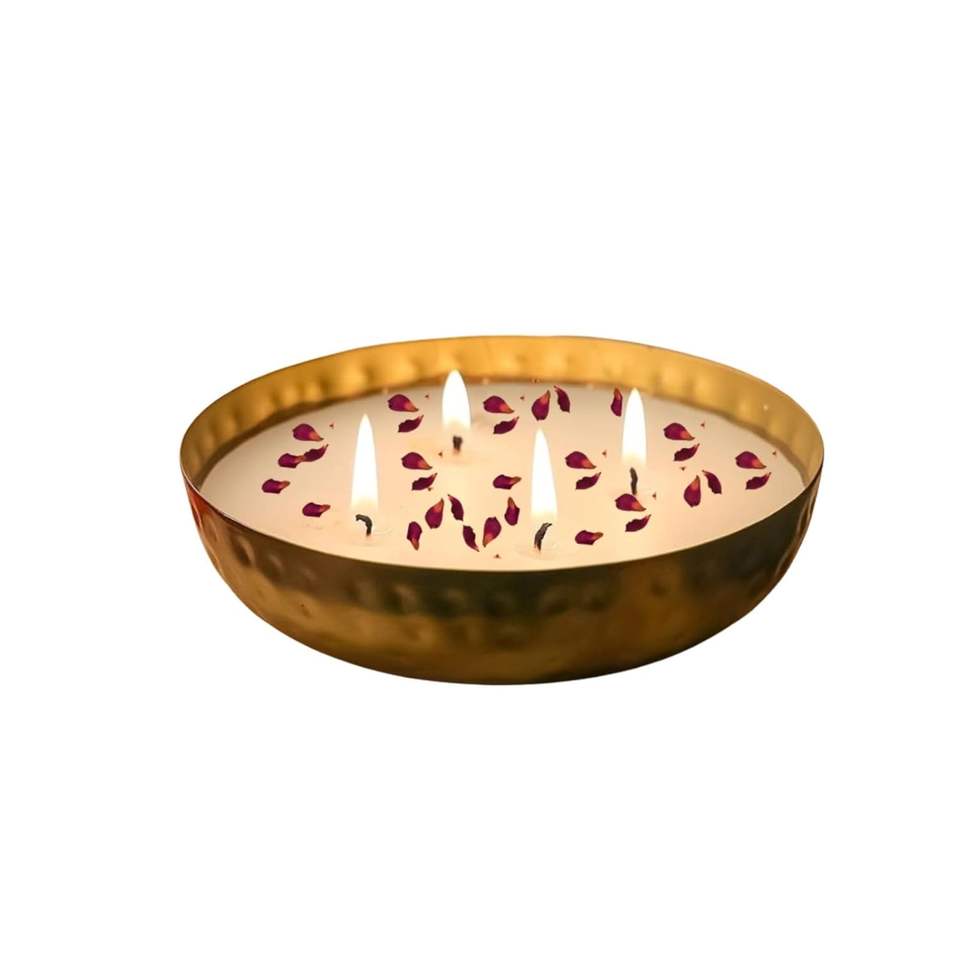 Brass Urli Cooper Bowl Candle 600g (Rose Vanilla Scent) Real Rose Leafs Decoration Wedding Decor Home Decor Diwali