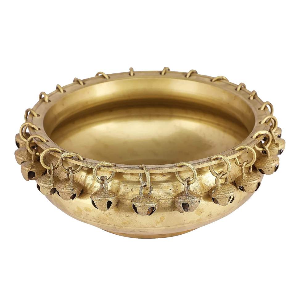 Brass Urli Ethnic Bowl with Bells Showpiece for Diwali Deshara Birthday Wedding Anniversary House Warming Gifting