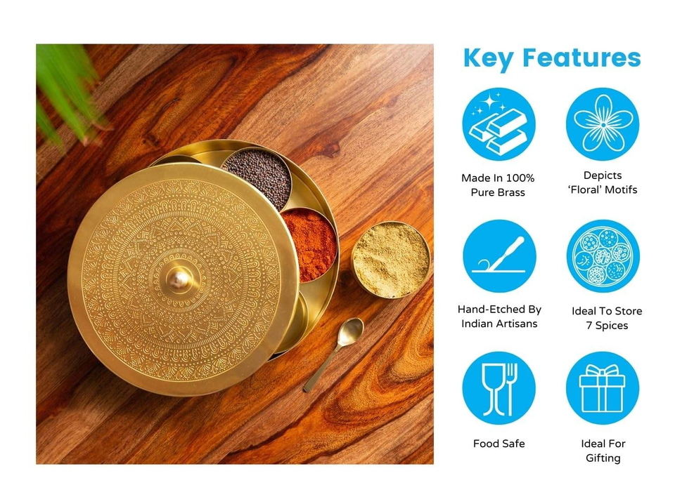 Brass With Spoon Kitchen Food Spice Storage Rack Spice Boxes Storage Masala Dani Brass Masala kitchen Storage Spice Rack Decor