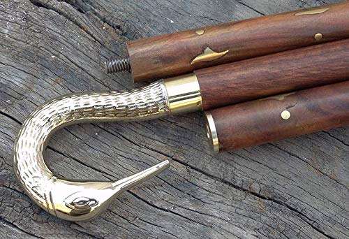 Vintage Victorian Walking Stick with Adjustable Brass Wooden Wolf Head Handle Retro Design Walking Staff