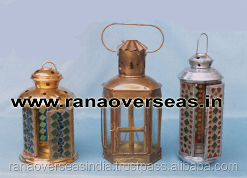 Brass Antique Lanterns with Moscaic Pasted On Glass