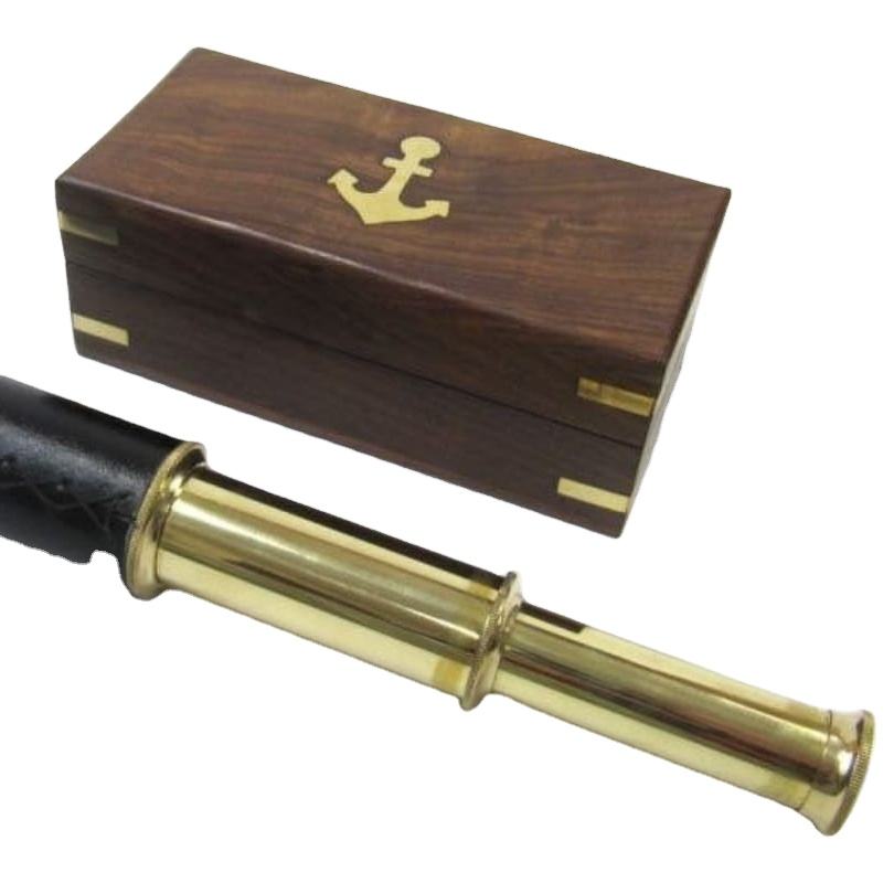 Brass Antique Telescope Pullout with Wooden Box/Brass 3 Fold Telescope With Lens Lid Collectible Marine Gift/business Promotion