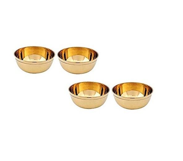 Handmade Six-Piece Brass Serving Bowl Set with Wood Cutlery for Rice Dish Serving Special Feature Gift Item