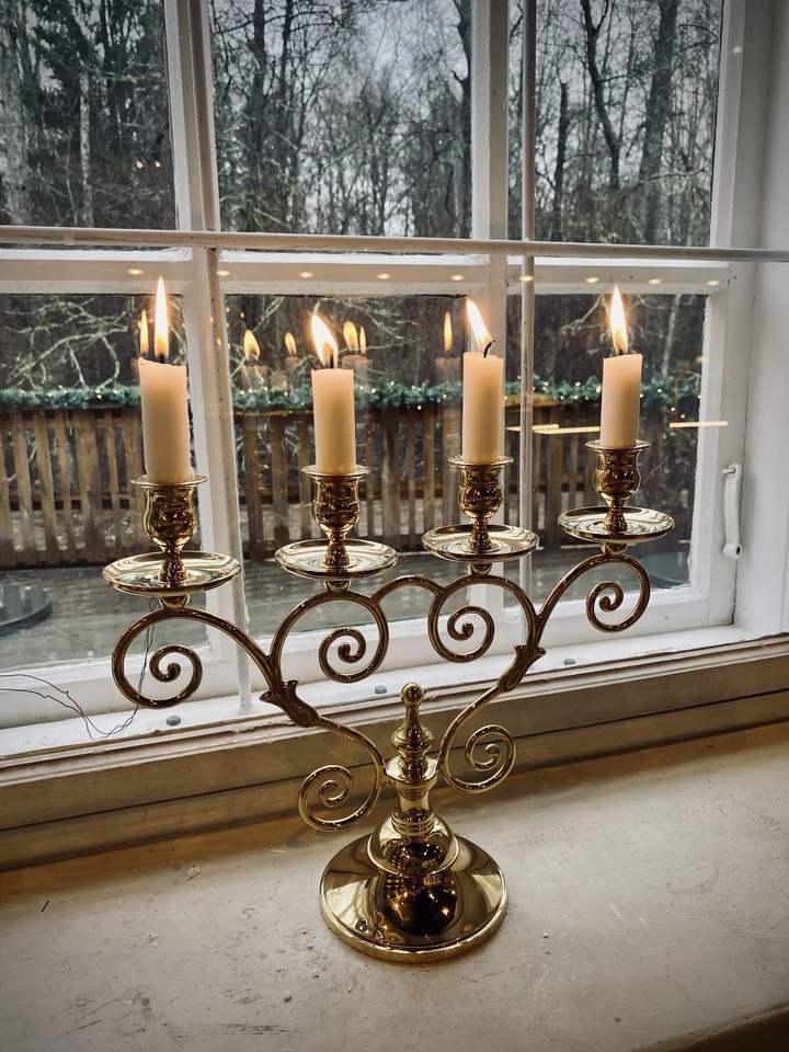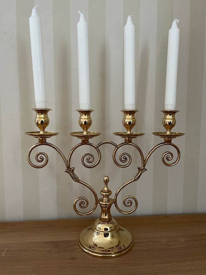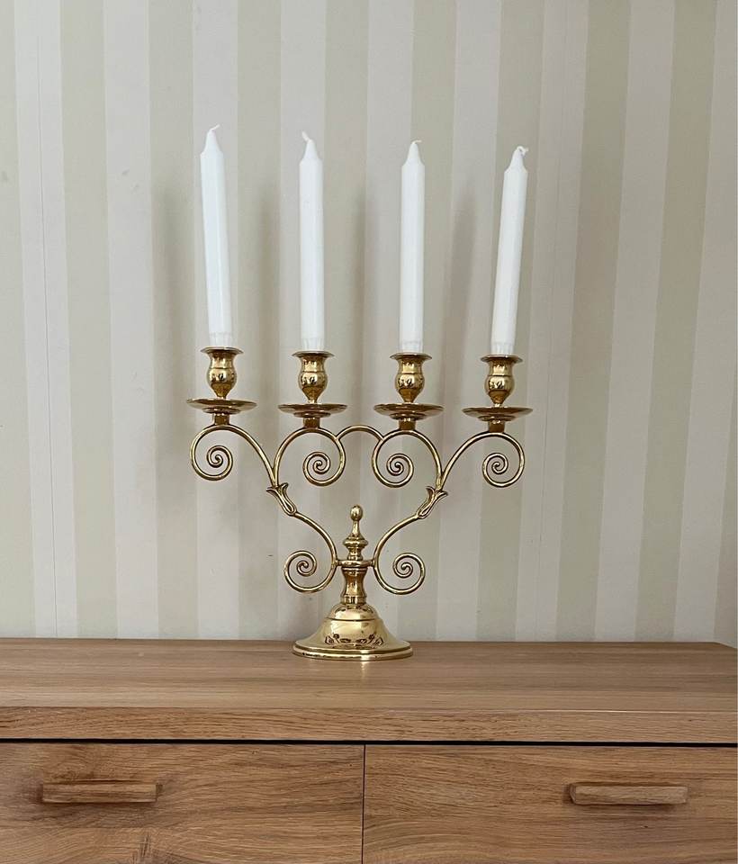 Brass candle holder Features a classic 4-arm design with a polished brass finish