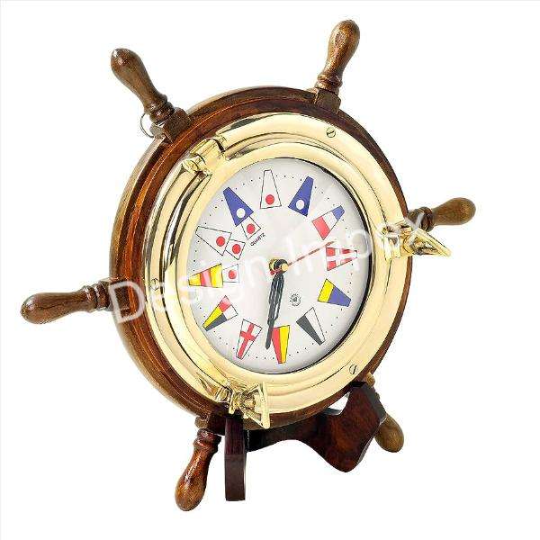 Brass Hot Demands American Ship Wheel Clocks Mirror Polished High Quality Shinny Metal Decorative Super Desktop Ship Wheel Clock