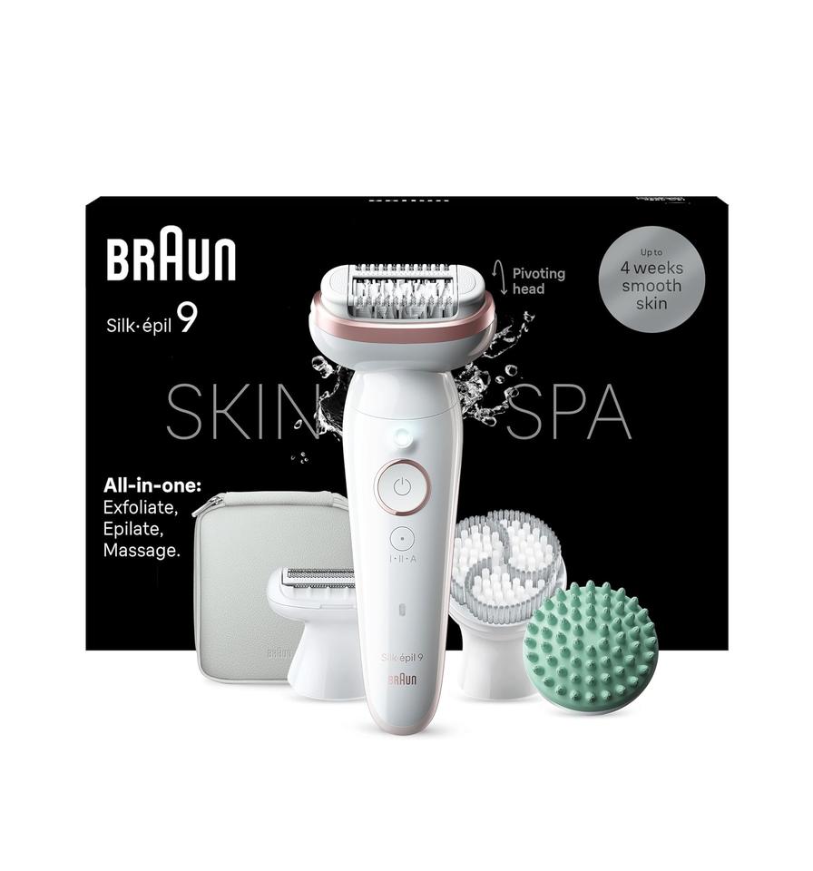 Braun Silk epil 9 9080 Women's Epilator For Legs And Body White Pink, 360 Flexible Head, Wireless, Waterproof