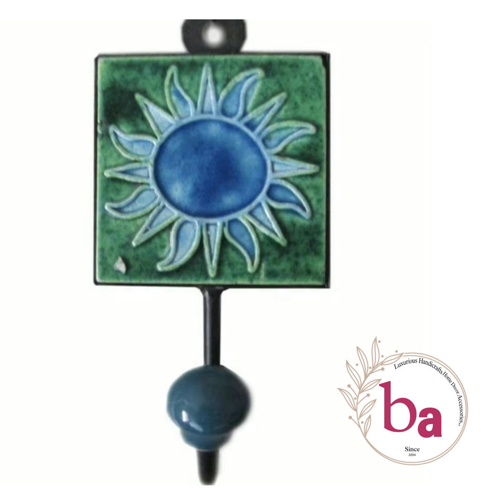 Bravo Rustic Peacock Ceramic Tile Wall Coat Hook Pottery Design Coat Hooks & Rails
