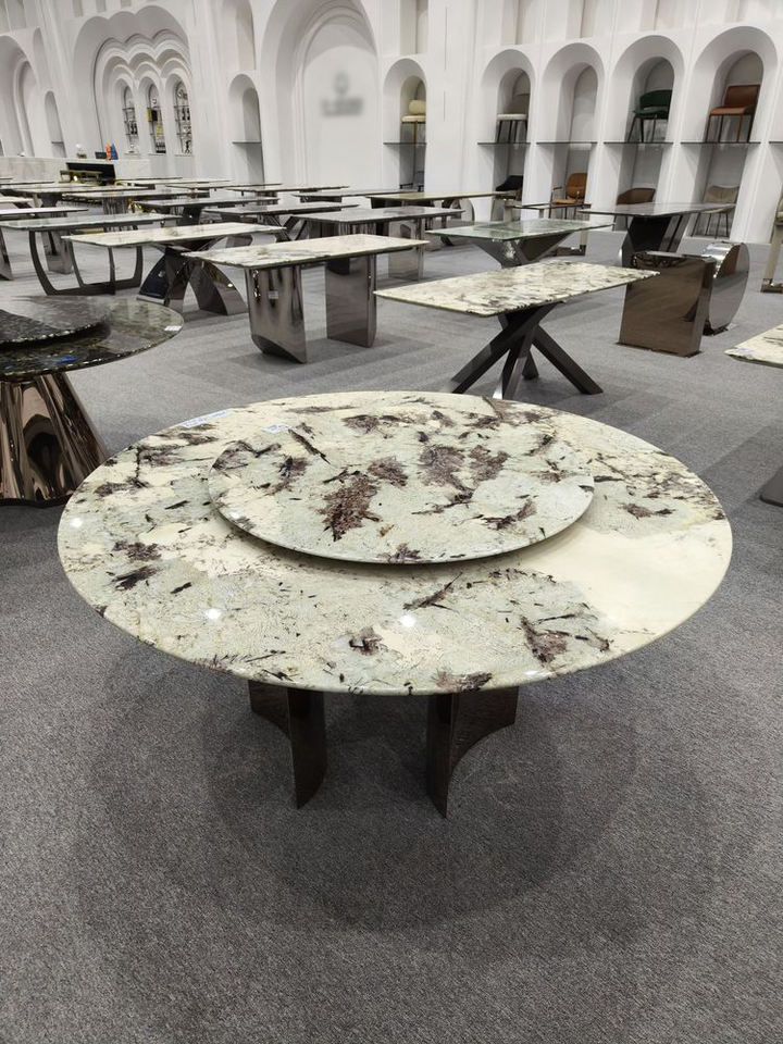 Brazilian Natural Marble Stone Beige Modern Polished Waterproof Hotel Round Dining Table with Turntable