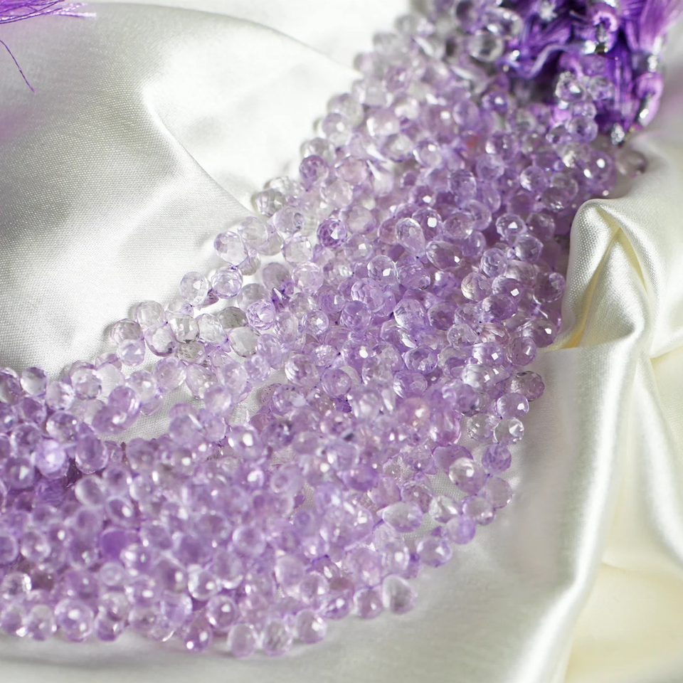 Brazilian Pink Amethyst Faceted Drops Beads 5X7MM Side Drill Elegant Shape Stone for Jewelry Making