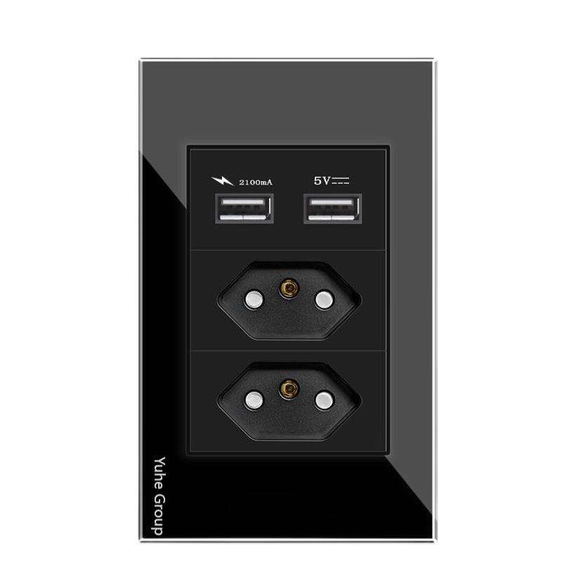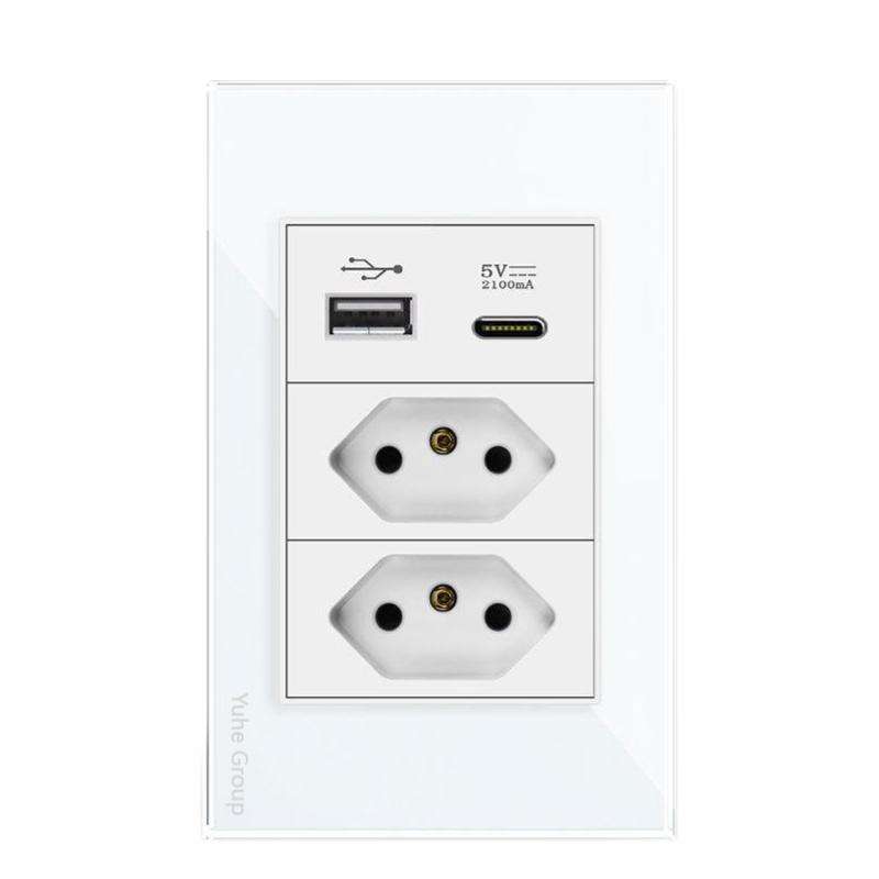 Brazilian Standard Wall Switch Socket 10A Household with Dual USB2.1A C-end PC Plate Switch Panel Socket