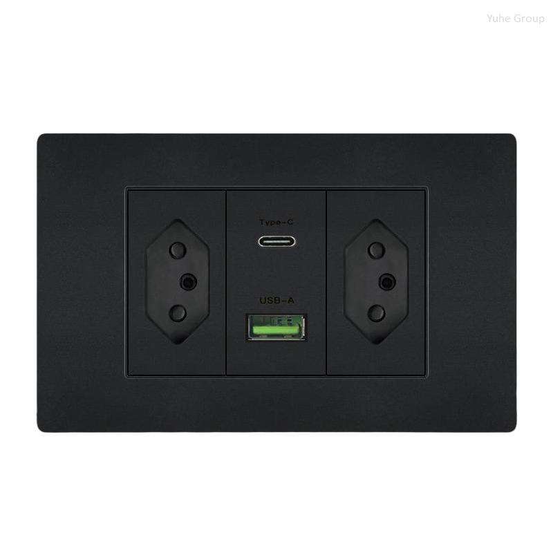 Brazilian standard PC USB wall socket, power socket panel, type 118 6-pin wall plug socket