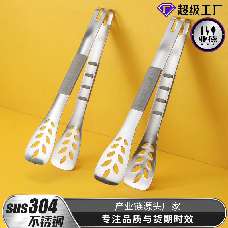 Bread Clamp 304 Stainless Steel Silicone Handle Heat Resistant Food Tongs For Cooking BBQ Buffet Use