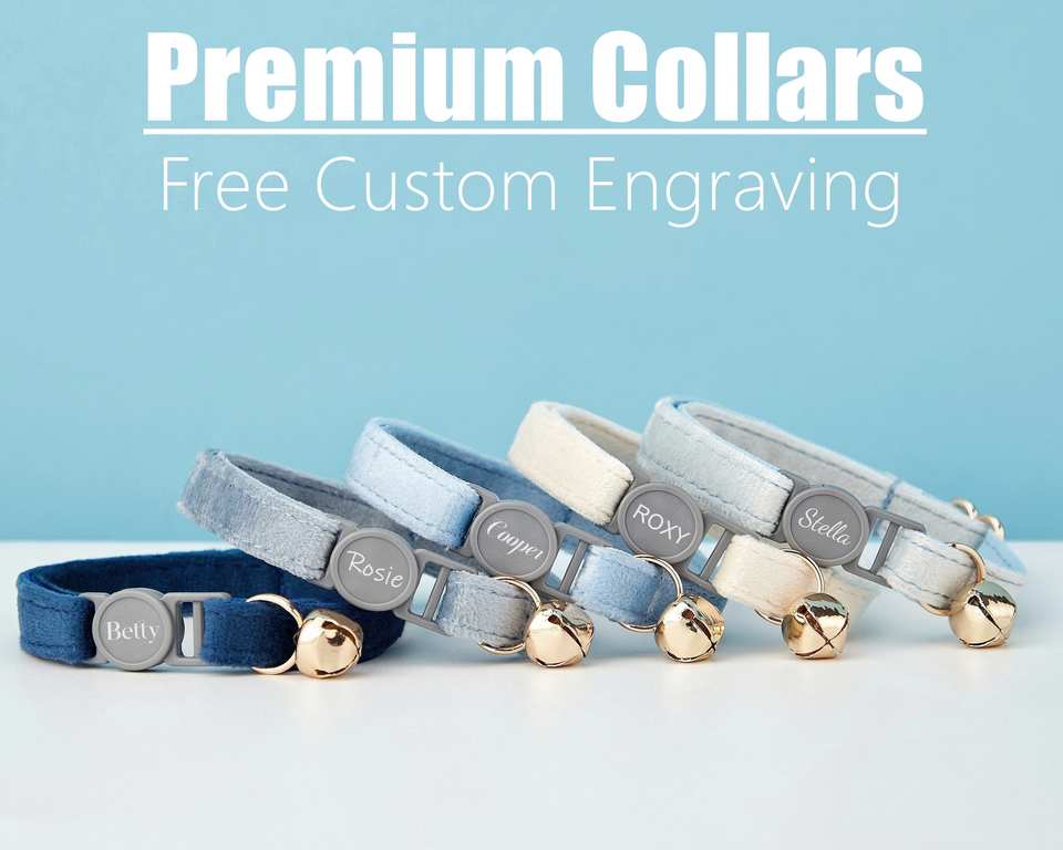 Breakaway Blue+Navy+White Veet Cat Collar Bow Tie Leash Set,Personalized Engraved Kitten Name Safety Buckle,Free Gold