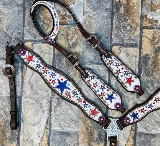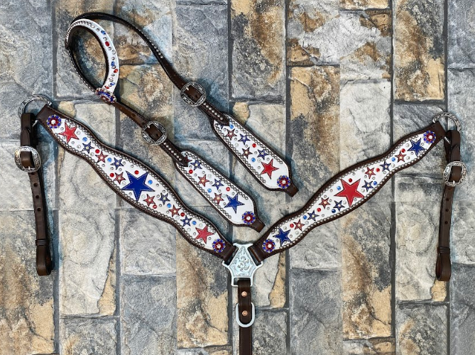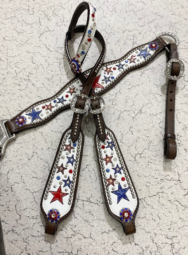 Breast Collar Cheek Piece Decorated Western Horse Headstall Breast Collar Set