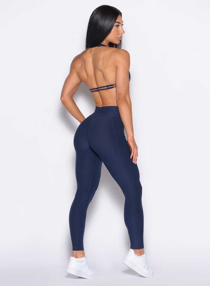 Breathable Blue Curves Elastic Waist Cosmic Blue Scrunch Butt Side Pockets Leggings High Waist Active Wear Leggings Gym Workout