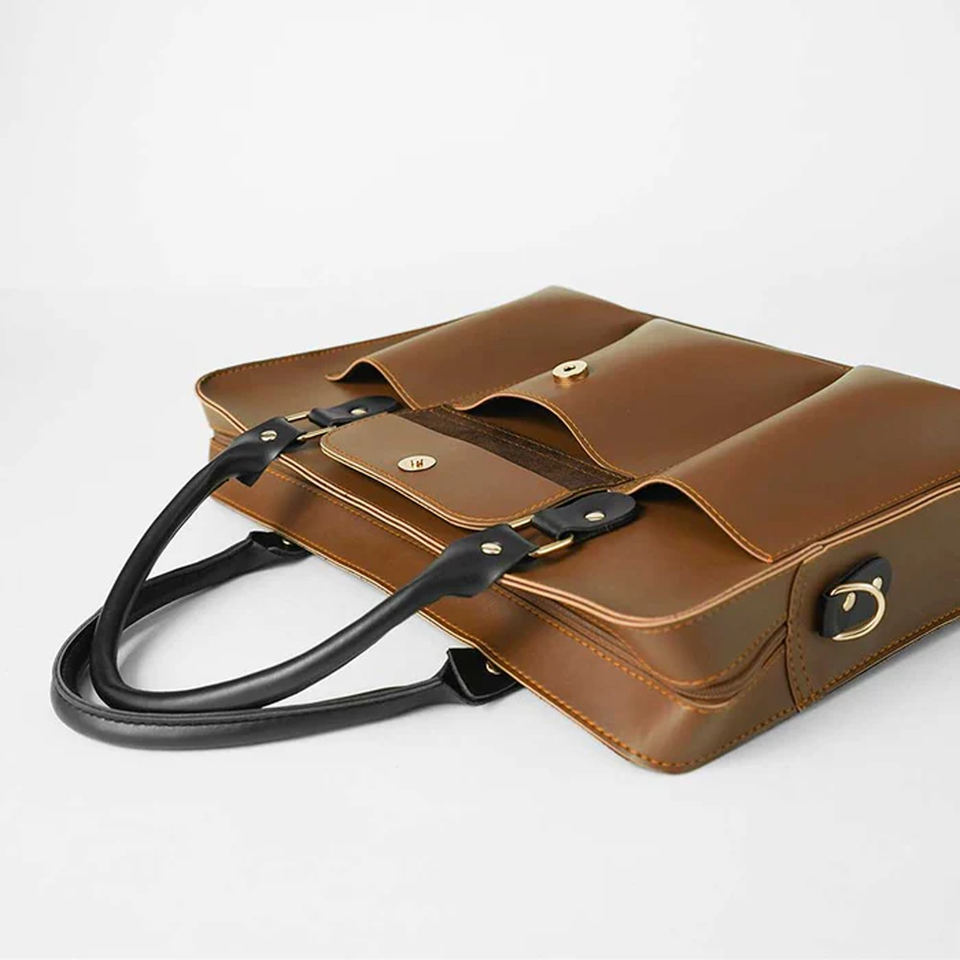 Breathable Brown Business Travel Laptop Handbag Office Carryall Multi Pocket Lightweight Shoulder Messenger Large Capacity Soft