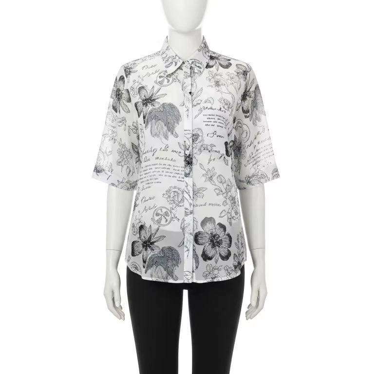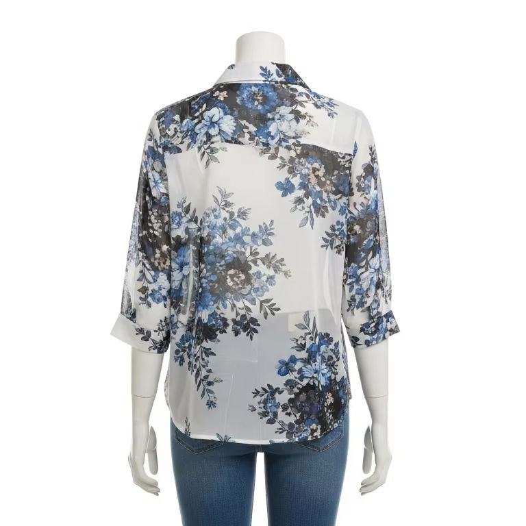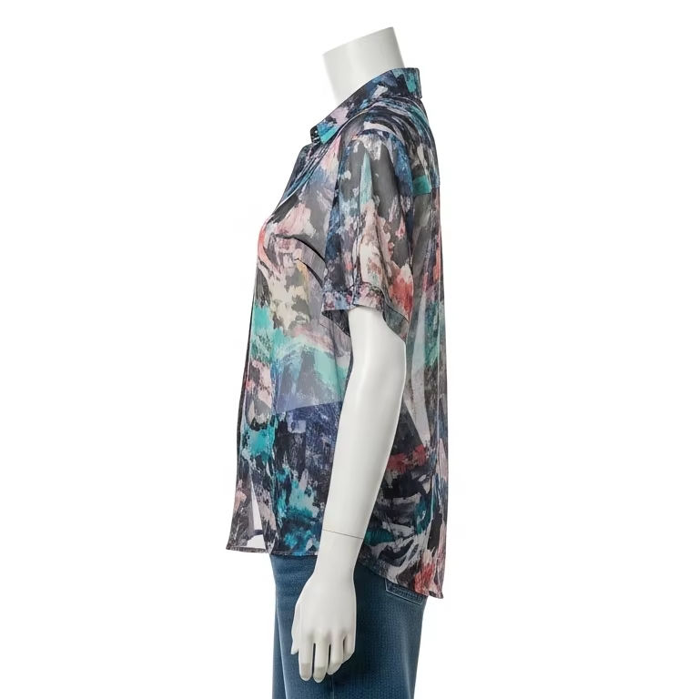 Breathable Chiffon Shirt Discharge Printing Lightweight Soft Fabric Loose Fit Elegant Womens Blouse For Office Casual Wear