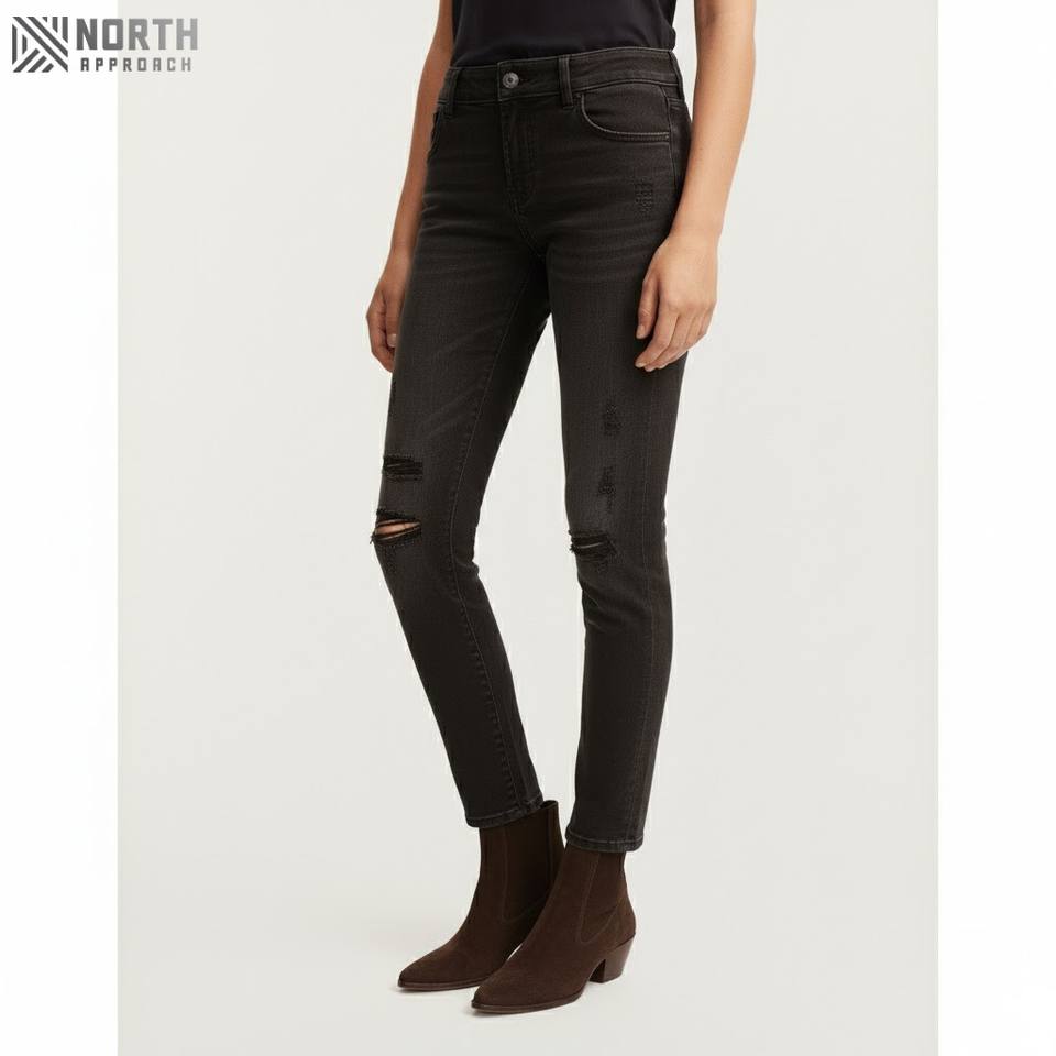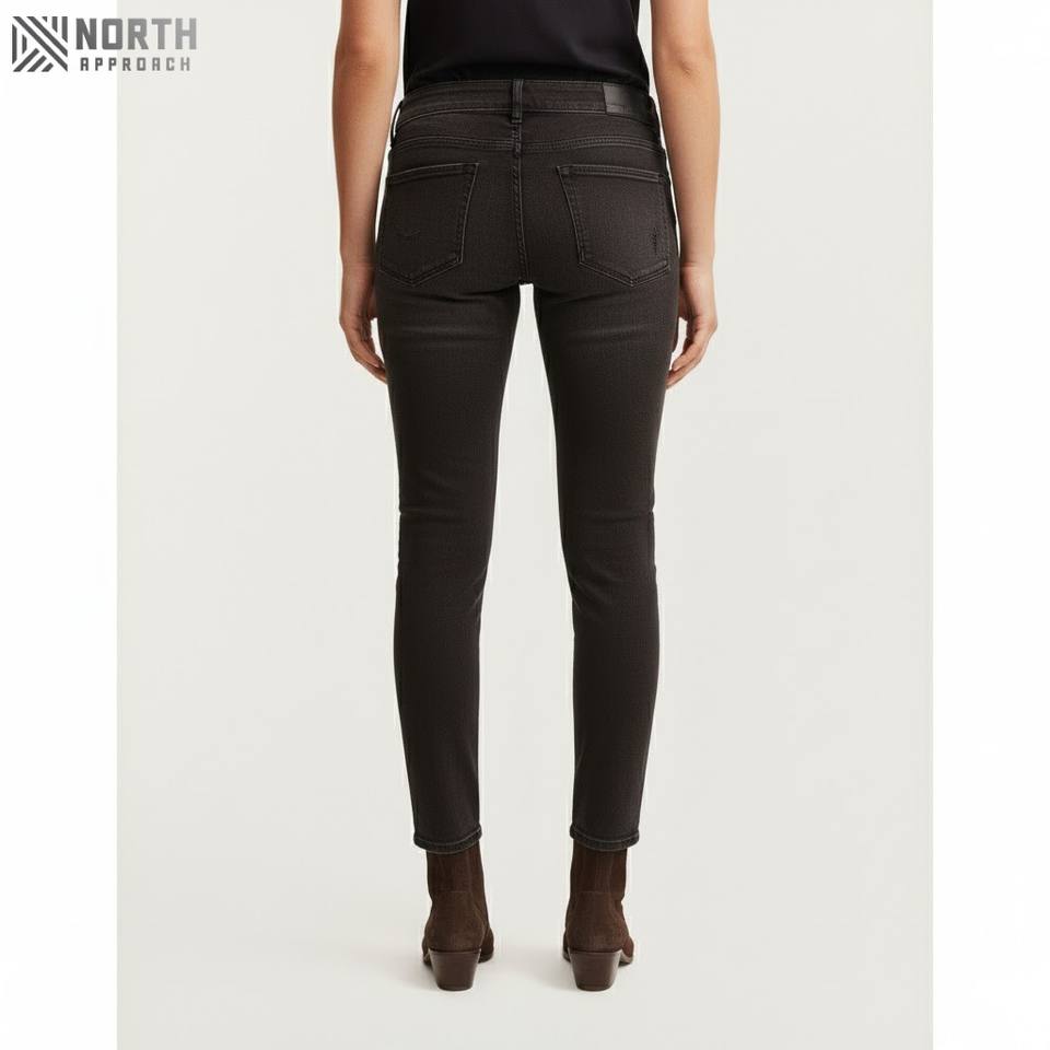 Breathable Comfortable Cotton Women's Skinny Fit Jeans Girlfriend Fit Ladies Denim Pants Waist Logo Pockets Casual Style
