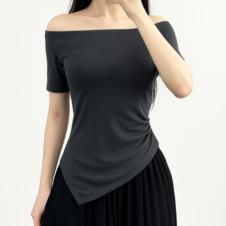 Breathable Comfortable Off Shoulder Boat Neck Pointed Hem Women Top Casual Sport Style OEM Vietnam Factory Direct Wholesale