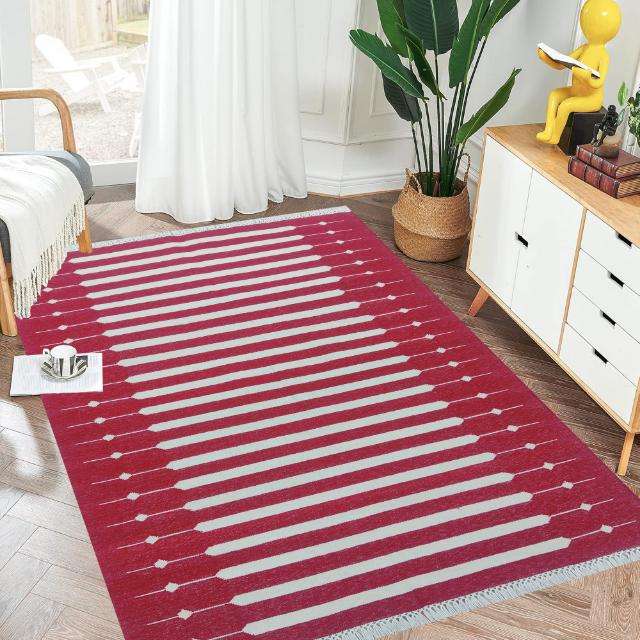 Breathable Cotton Modern Dhurrie Rug with Anti-Bacteria & Non-Slip Features for Bedroom Kitchen Hallway-020 Area Rugs & Sets