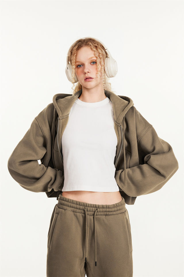 Breathable Custom Printed Zipper-Up Fleece Anti-Pilling Front Ladies Light Weight 300 GSM Cotton Hoodies Sweatshirt Manufacturer