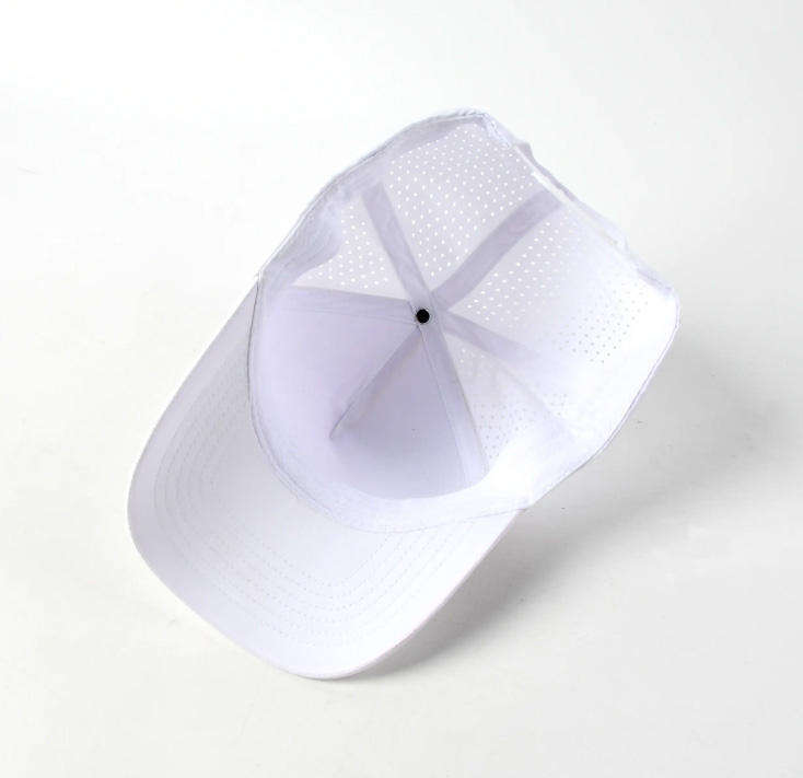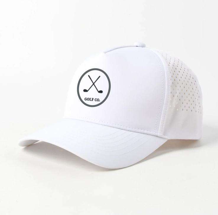 Breathable High Quality 5 Panel Golf Trucker Hat Laser Cut Hole Perforated Waterproof Custom Rubber Patch Logo Unisex Sports Cap