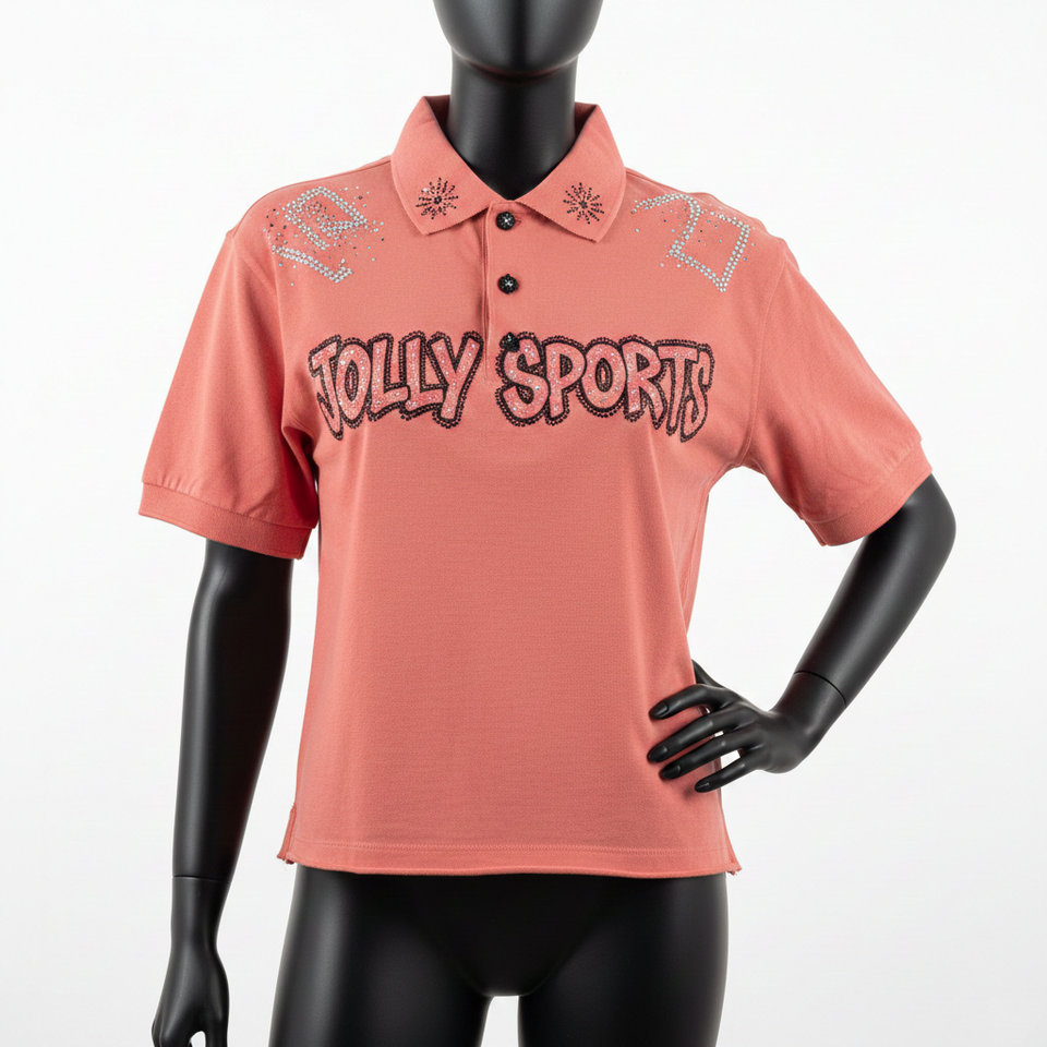 Breathable Ladies 220 GSM Heavy Pique Knit Polo Shirt Soft Cotton Blend Coral Peach Rhinestone Heat Press Logo Women Polo Shirts