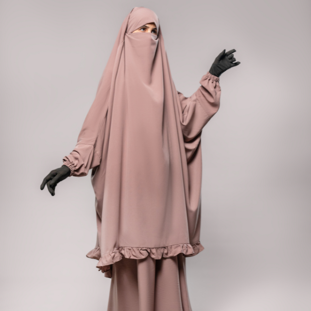 Product name:Two Piece Ruffle Jilbab With Elastic Sleeves