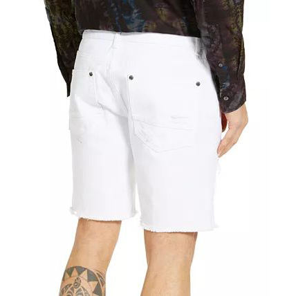 Breathable Ripped With Buttons White Denim Men's Slim Fit Shorts Jeans Stretch Fabric Pockets Stylish Cotton Short Jean