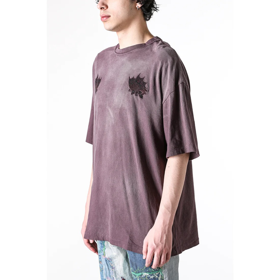 Breathable Trendy Acid Washed distressed T-shirt for Men Ageha butterfly embroidery Oversized cool emo T-shirt for Men