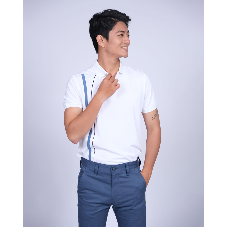 Product Name:Polo Shirt with Contrast Corded Piping Lines Down Front