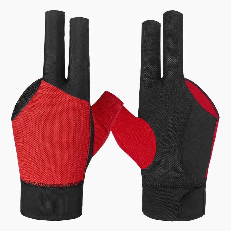 High Quality 3-Finger Snooker Gloves Breathable Spandex Material Professional Style Low-Price OEM Billiards Gloves Logo