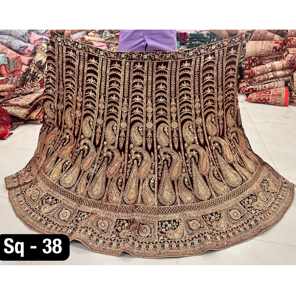 Breathtaking Velvet Bridal Lehenga Choli Set with Heavy Work Sequence and Net Dupatta Border Long Choli Export Ready