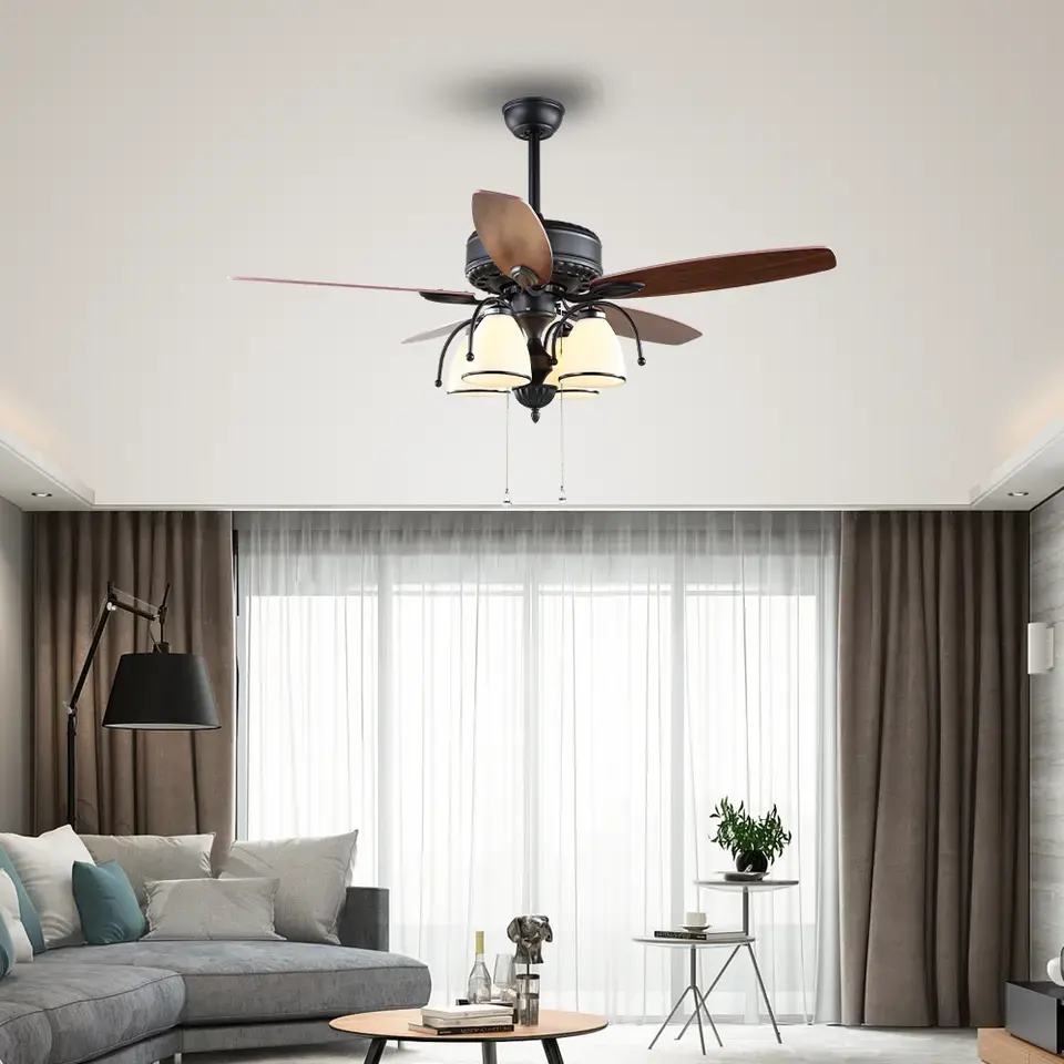 Breezelux 52-Inch Antique Bronze LED Ceiling Fan with 5 Blades Remote Control Vintage Midcentury Design for Bathroom Application
