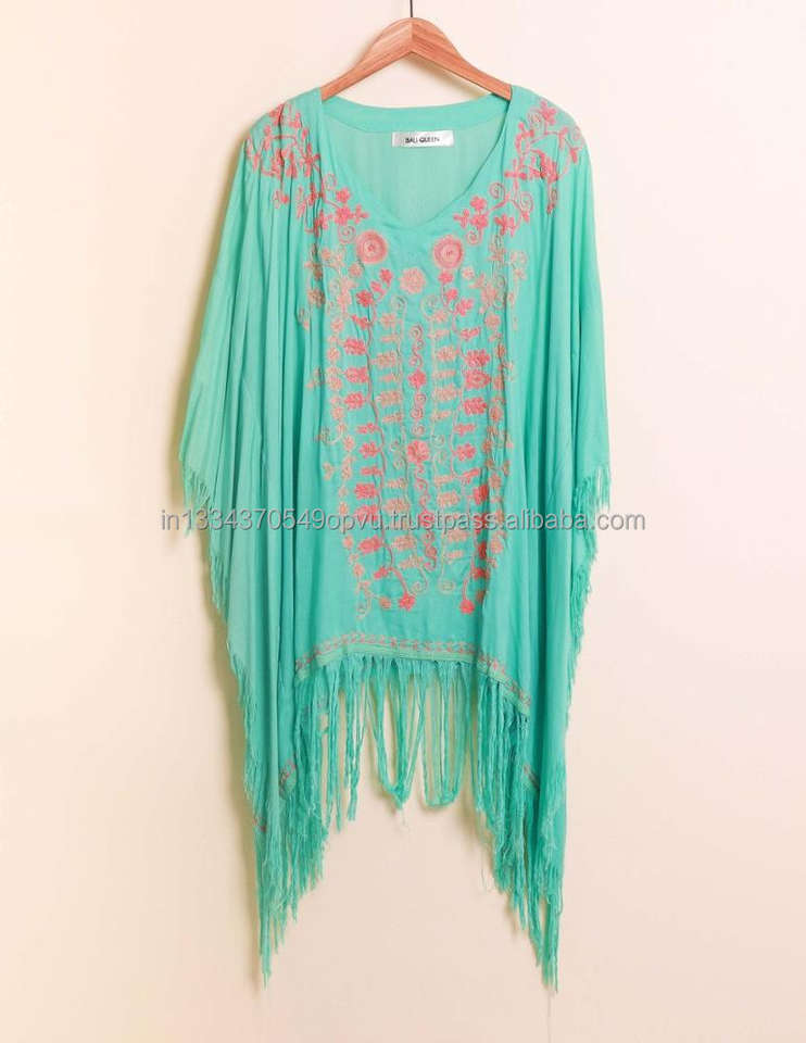 Breezy Mediterranean White Sandy Beach Lady Cover Up Dress Playful Free Falling Fringe Exquisite Embroidered Women Kaftan Poncho