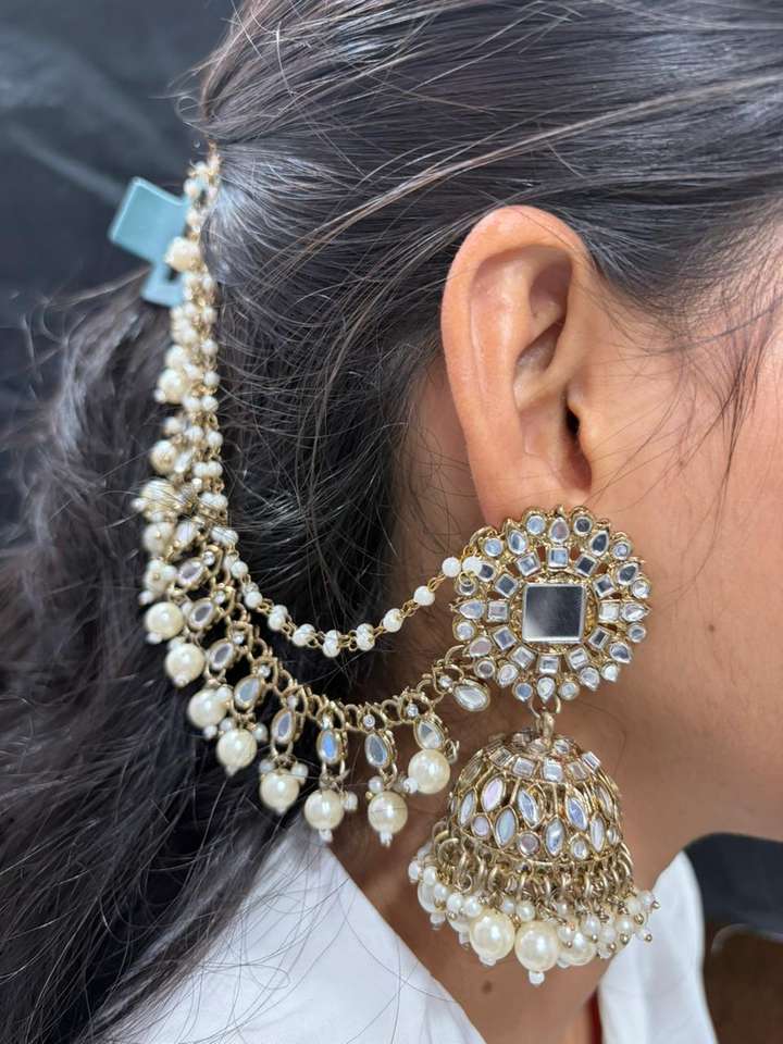 Traditional Kundan studded in paisley design earcuffs with jhoomk