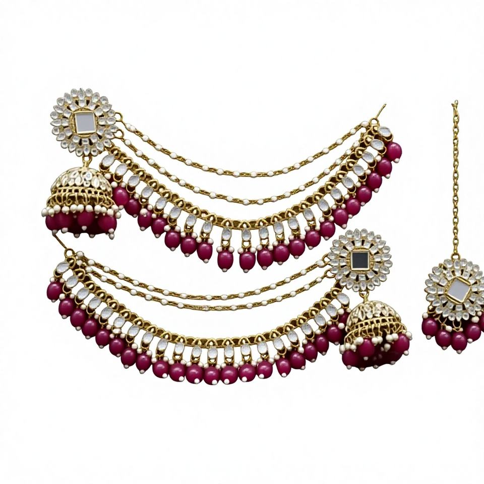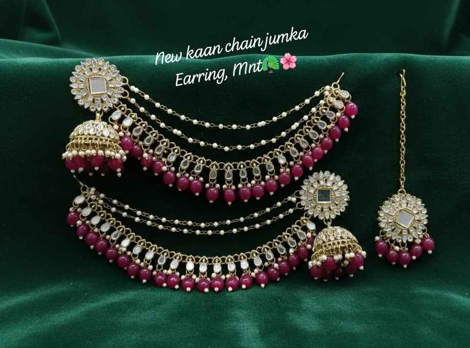 Products Name:Traditional Kundan studded in paisley design earcuffs with jhoomk