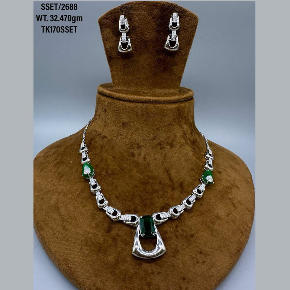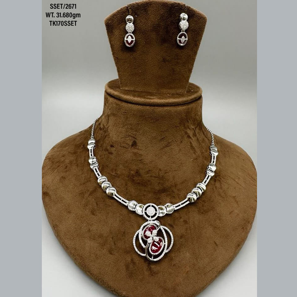 925 Sterling Silver Zircon Jewellery Necklace Earrings Set