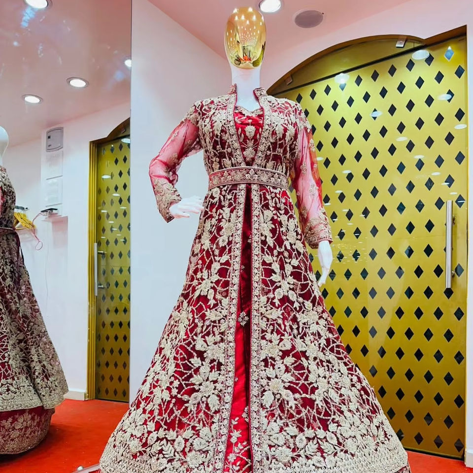 Bridal Lehenga Set in Velvet with Full Jarkan Shrug, Matching Belt & Dupatta Trending Winter Mastani Wear
