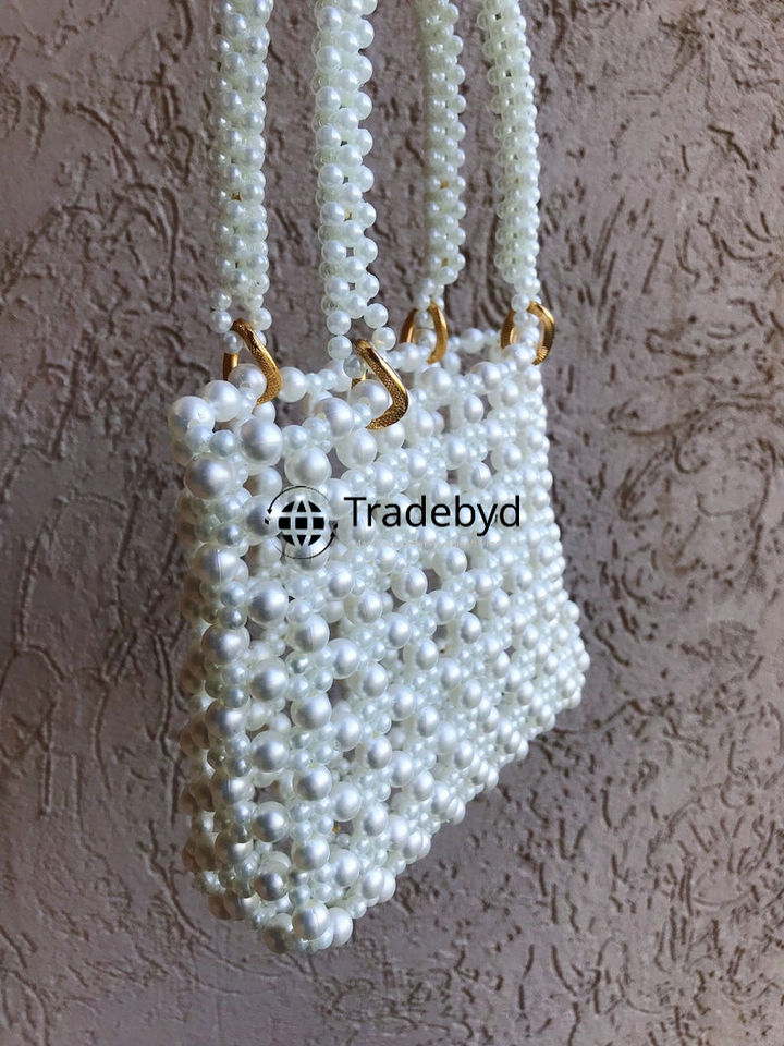 Bridal Pearl Clutch Bag Wedding Day Purse for Bride and Bridesmaids Elegant Handmade Design by Tradebyd