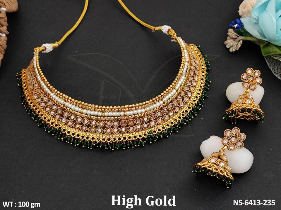Bridal Polki Jewellery Necklace Set with Kundan Stones and Pearl Drops Traditional Indian Wedding Jewelry