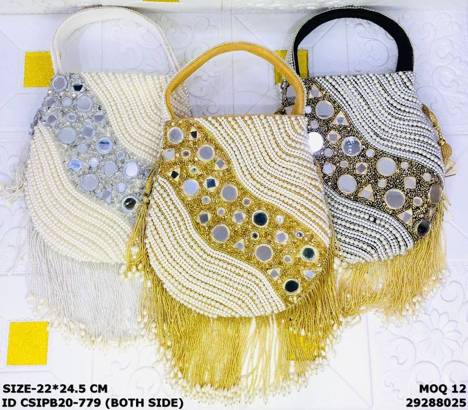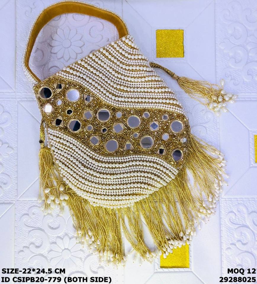 Bridal Potli Bag Beading Solid Pattern 1-1.9L Capacity Dori Closure Ring Strap Multi-Function for Evening Parties-Craftstages