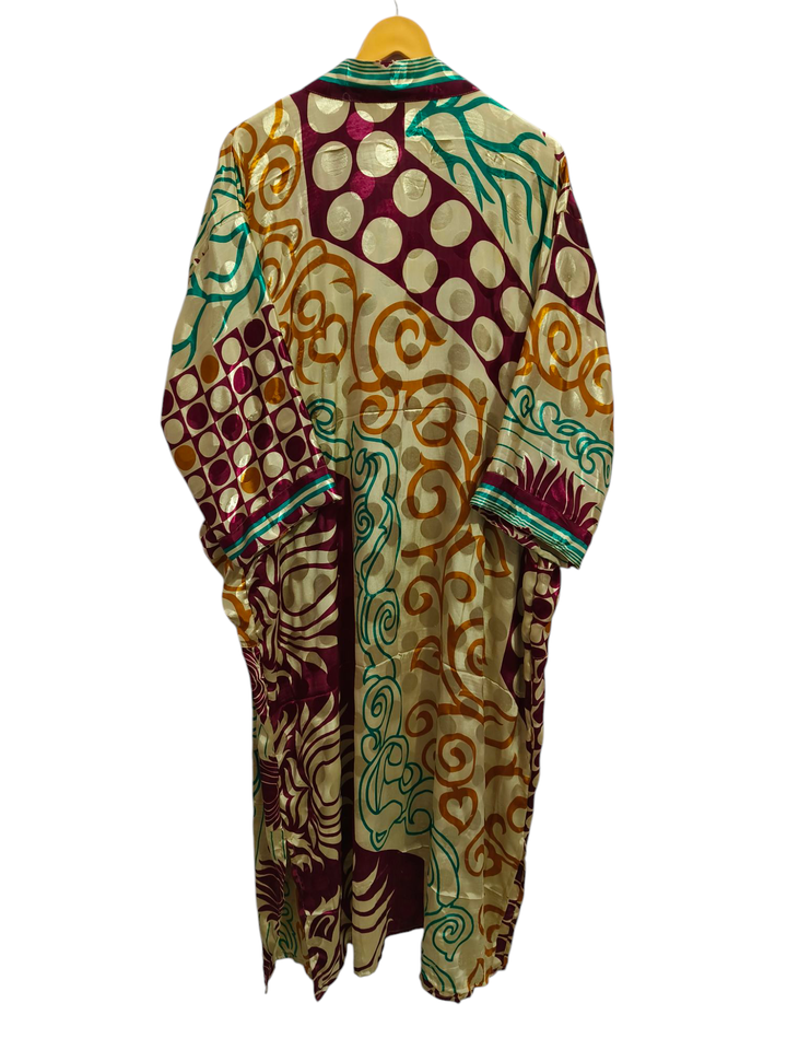 Bridal Robe Light Weight Silk Robe For Woman Night Wear Long Robe, Floral Print Indian Vintage Recycled Silk Sari Kimono,