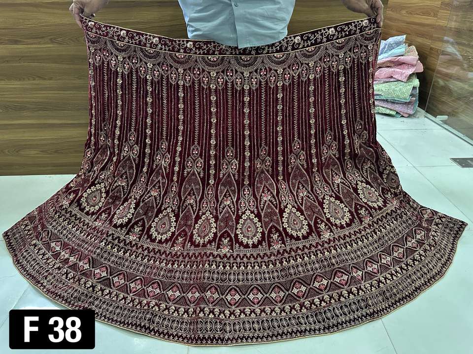 Work on fabric:11000 VELVET LEHENGA