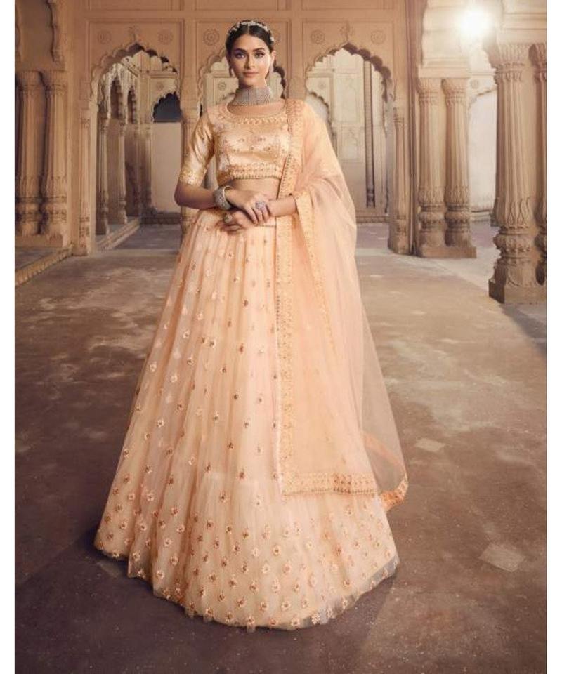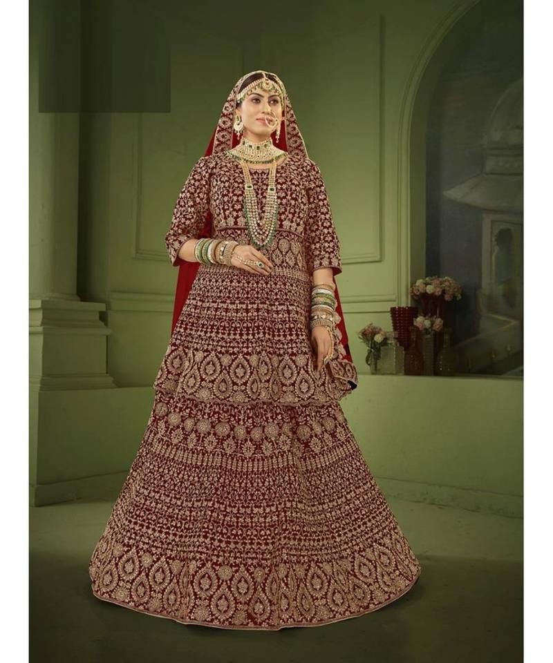 Bridal Wedding Sezy One Piece LehengaCholi for Women in Pink with Heavy Embroidery and Sequins