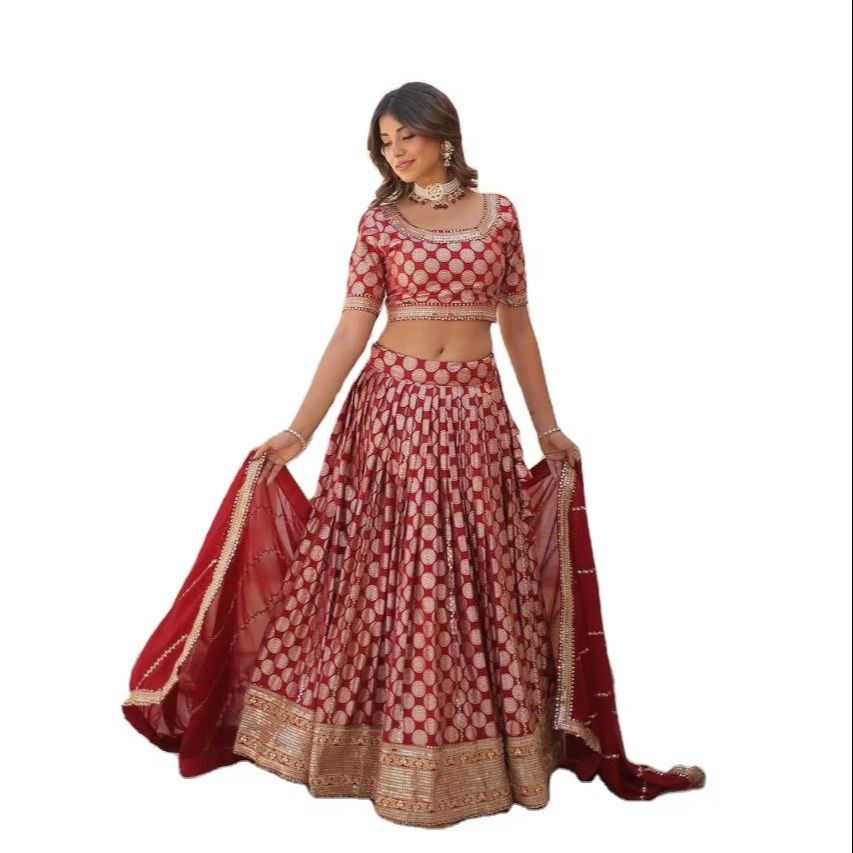 Bride maid Red Color Pure Viscose Silk Fabric Wedding& Sangeet & Engagement Special Fashionable Choli With Cancan& Canvas Attach