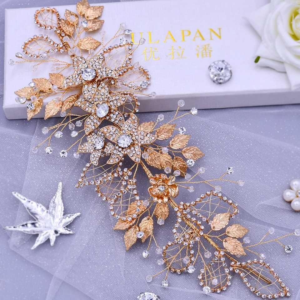 Bridella BHP282-G Gold Rhinestone Bridal Headband with Comfortable Fit for Weddings & Formal Events