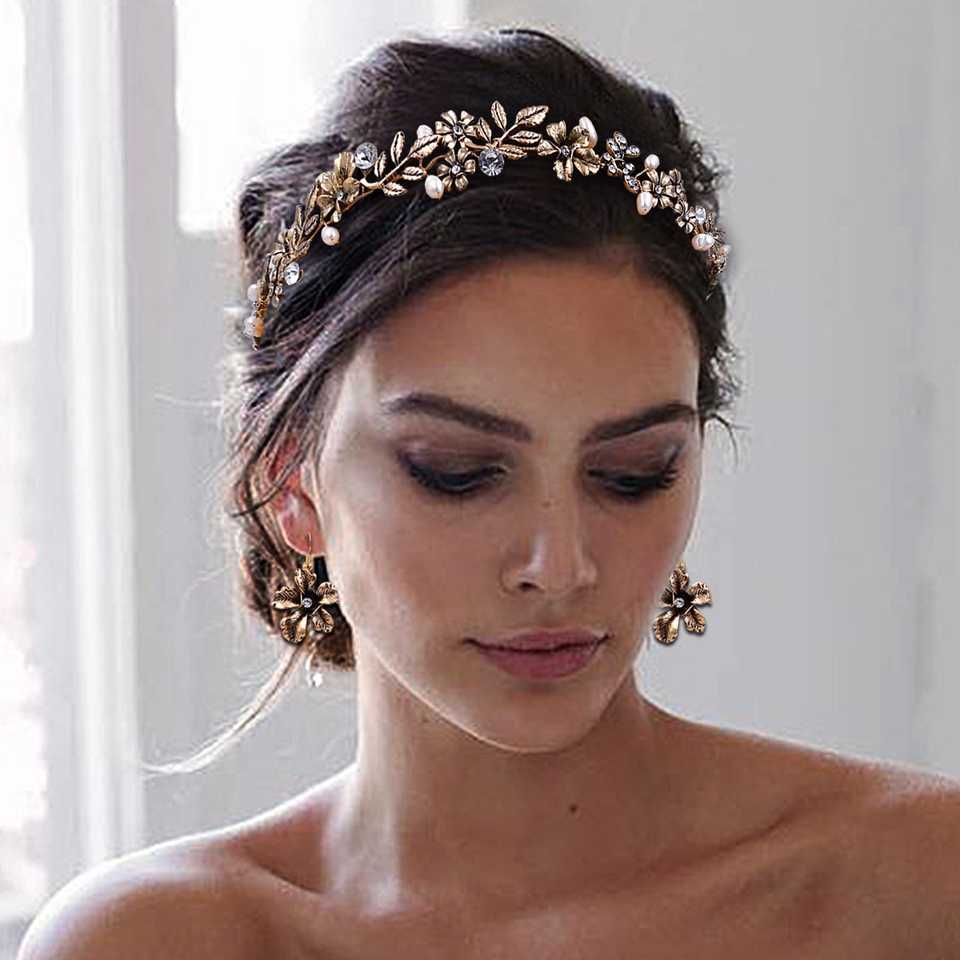 Bridella BHP355 Vintage Gold Rhinestone & Pearl Tiara Elegant Bridal Headwear Comfortable Fit for Weddings Proms Formal Events