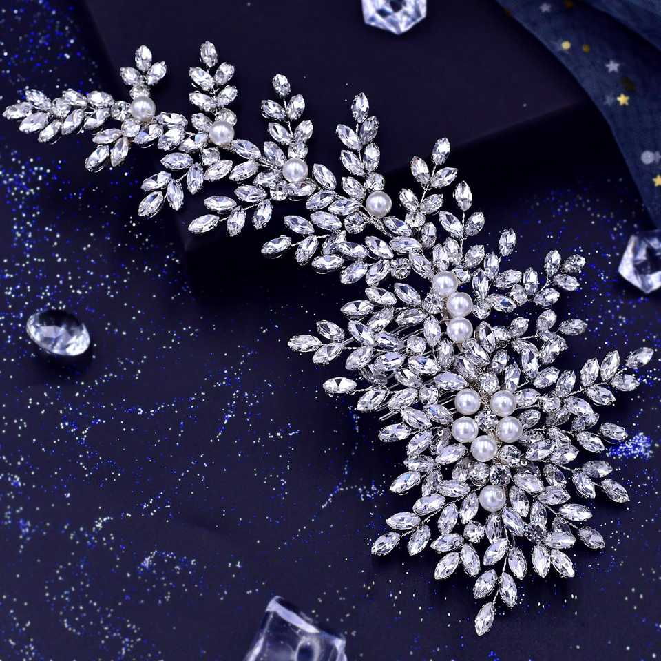 Bridella BHP434-S Silver Rhinestone & Pearl Hair Comb-Elegant Hair Accessory Comfortable Fit for Weddings Proms Formal Events