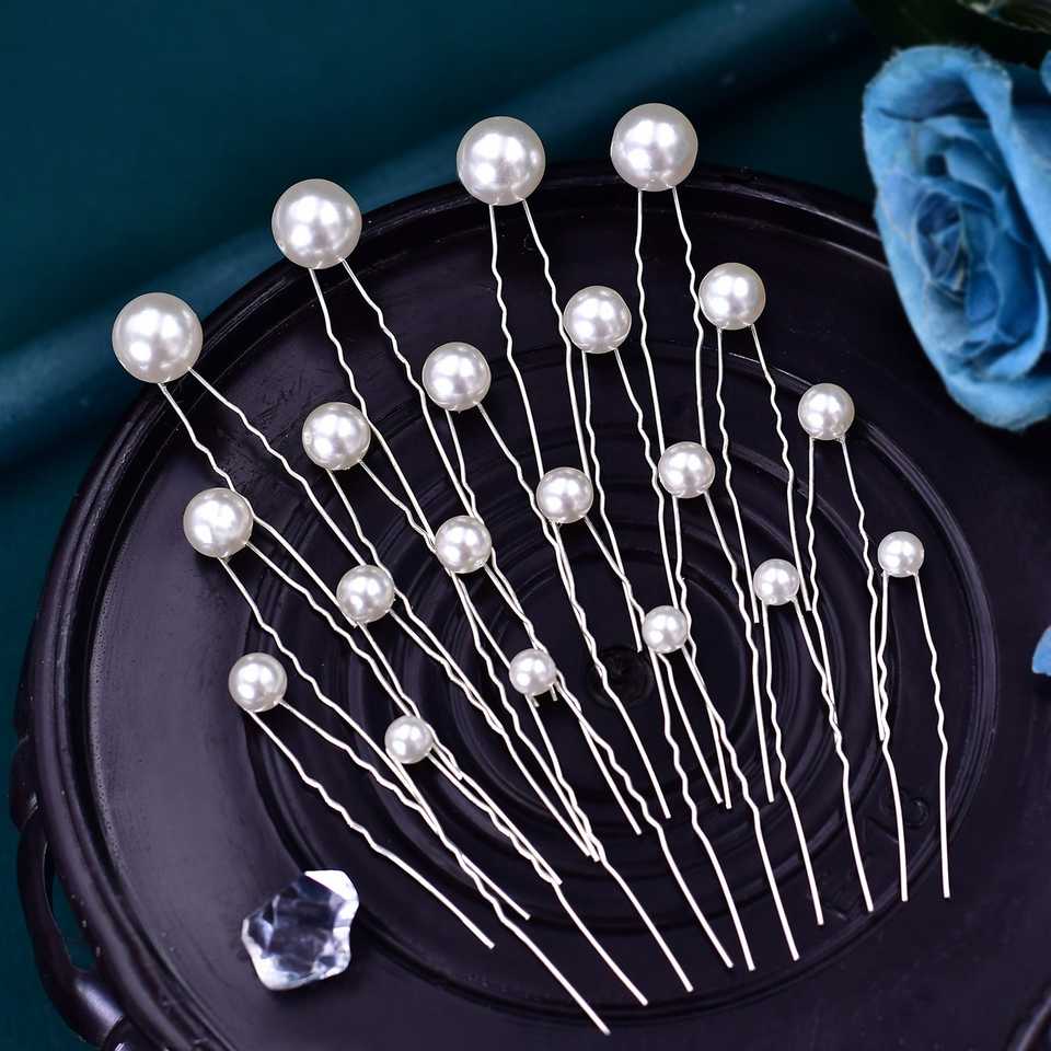 Bridella BHP536 Silver Pearl Headwear 20-Pcs Wedding Bridal Accessory with Comfortable Fit